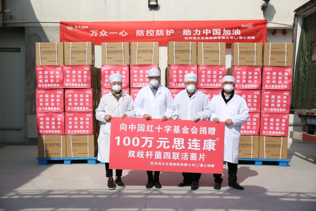近日,在得知防疫一線急需微生態(tài)藥品后,杭州遠(yuǎn)大生物制藥有限公司立即啟動(dòng)捐贈(zèng)程序,決定捐贈(zèng)價(jià)值100萬(wàn)元的雙歧桿菌四聯(lián)活菌片(思連康),專項(xiàng)用于疫區(qū)新型冠狀病毒肺炎的防治。截至發(fā)稿前,該批藥品已運(yùn)往浙江、湖北、湖南等地,運(yùn)達(dá)后將在第一時(shí)間用于疫情治療。